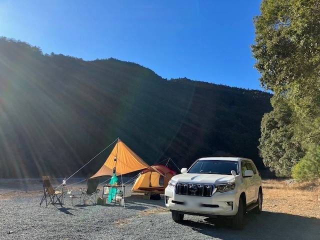 キャンプ道具を車に載せて友達と一緒に静岡県やその周辺の山や川の綺麗なキャンプ場に行きます。キャンプ場では綺麗な自然の中で美味しい食事をしたり、焚火(たきび)をして友達と過ごします。